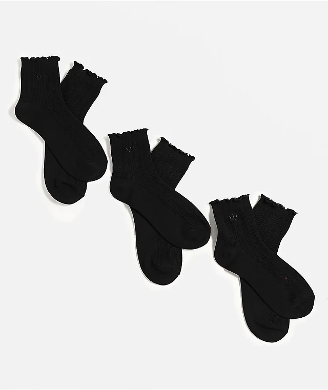 adidas Originals Ruffle 3-Pack Black Ankle Socks