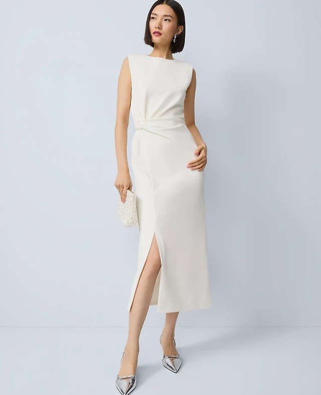 Ann Taylor Colorblock Twist Midi Dress Winter White Women's