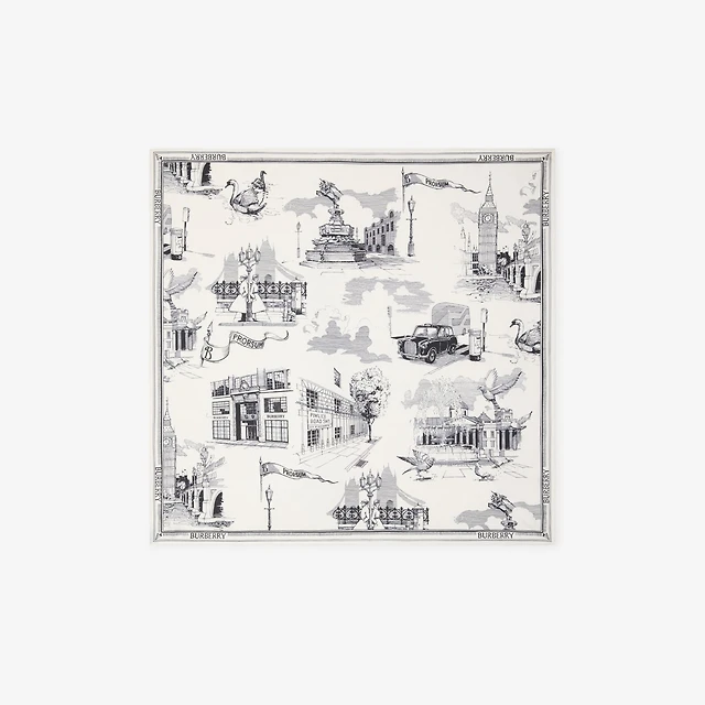 London Landmarks Wool Silk Scarf in Monochrome | Burberry® Official