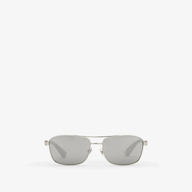 Metal Shield Aviator Sunglasses in Silver - Men | Burberry® Official