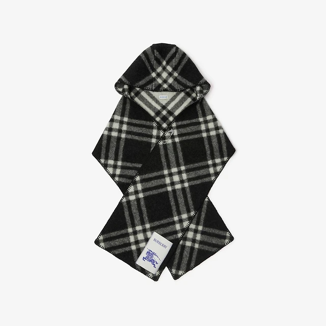 Check Wool Hooded Scarf in Black | Burberry® Official