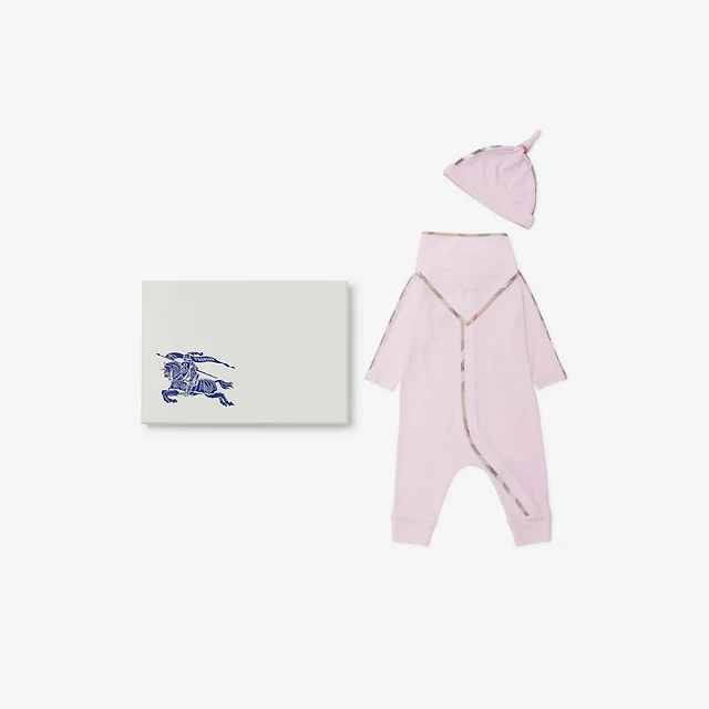 Stretch Cotton Three-piece Baby Gift Set in Lotus pink - Children | Burberry® Official