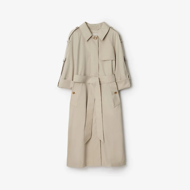 Long Cotton Trench Coat in Heron - Women, Nylon | Burberry® Official