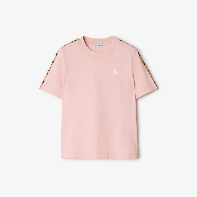 Check Trim Cotton T-shirt in Bouquet - Women | Burberry® Official