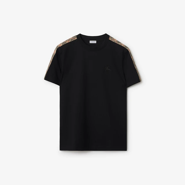 Check Trim Cotton T-shirt in Black - Men | Burberry® Official