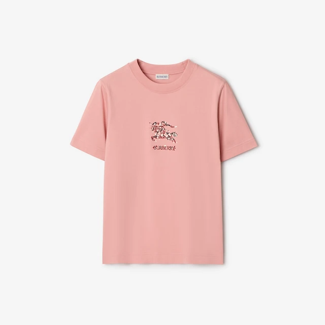 Floral EKD Cotton T-shirt in Begonia pink - Women | Burberry® Official