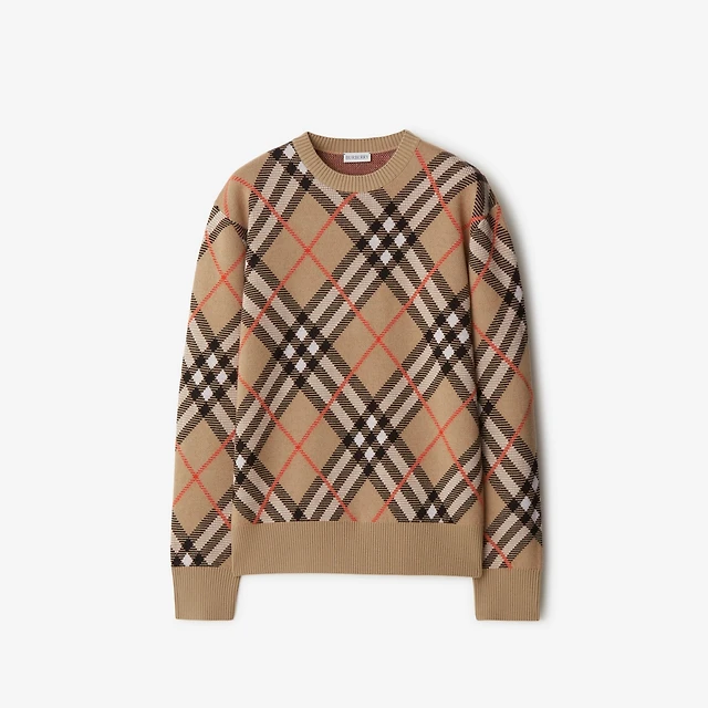 Check Wool Cashmere Cushion in Sand | Burberry® Official