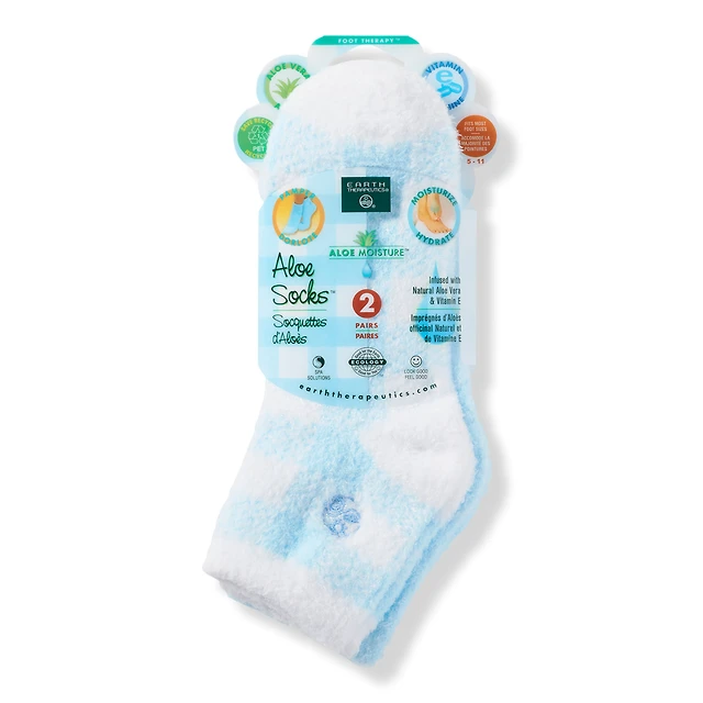 Earth Therapeutics Plaid & Solid Blue Aloe Socks