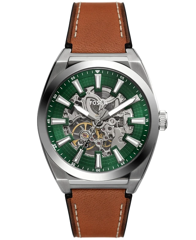 Fossil Men's Everett Automatic Brown Leather Watch 42mm