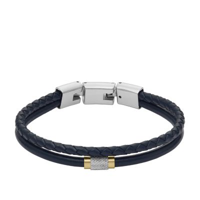 Machine Knurled Texture Navy Leather Multi-Strand Bracelet