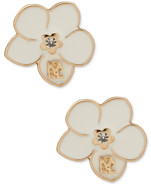 Karl Lagerfeld Paris Gold-Tone Enamel Flower Logo Drop Earrings