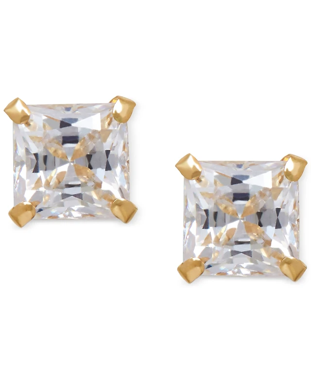 Cubic Zirconia Square Stud Earrings 14k Gold