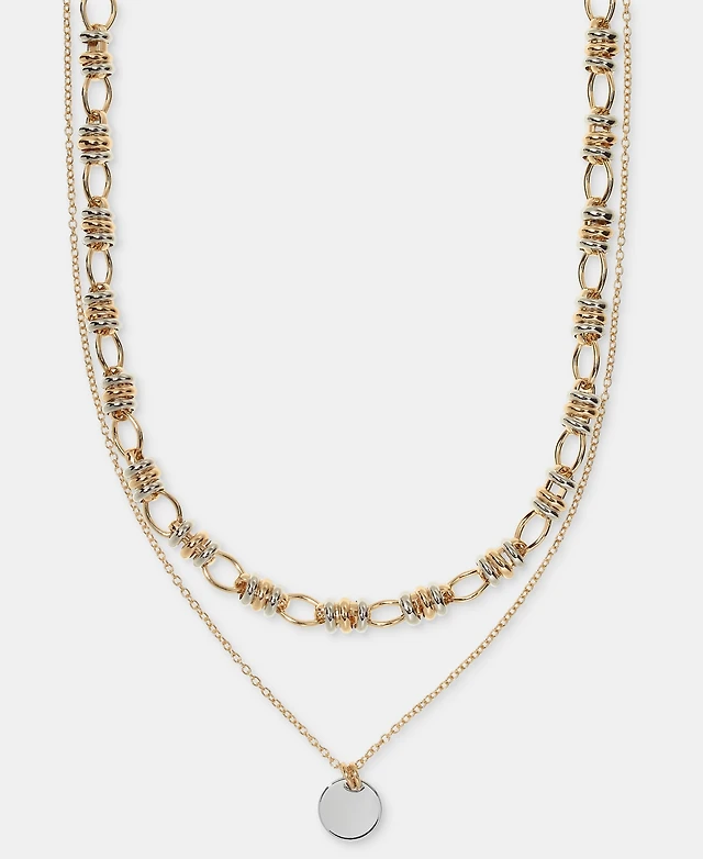 On 34th Gold-Tone Stone Pendant Layered Necklace, 18" + 3" extender, Macy's Exclusive