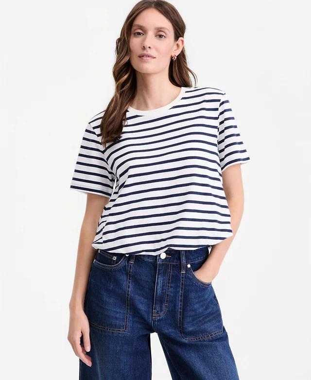 On 34th Women's Striped Bubble-Hem T-Shirt, Macy's Exclusive