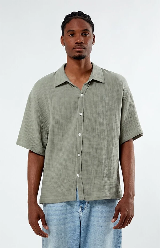 Pacsun Cropped Boxy Gauze Camp Shirt
