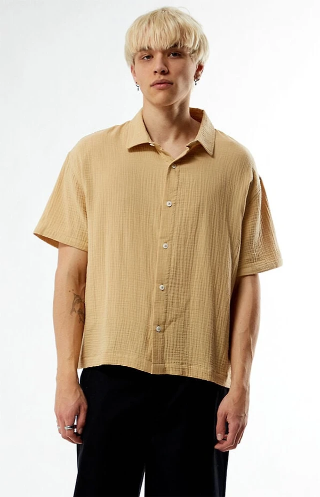 Pacsun Tan Cropped Boxy Gauze Camp Shirt