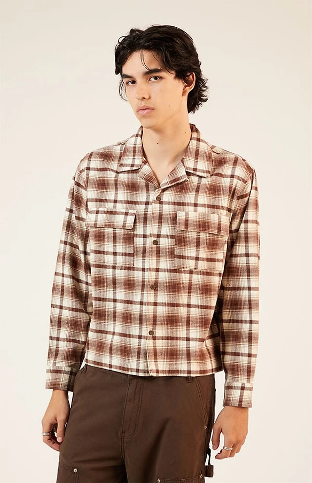 Pacsun Tan & Black Plaid Long Sleeve Flannel Shirt