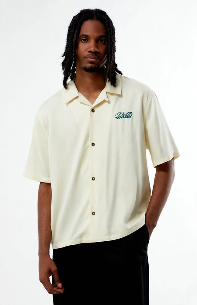 Pacsun Cream Remi Embroidered Oversized Resort Camp Shirt