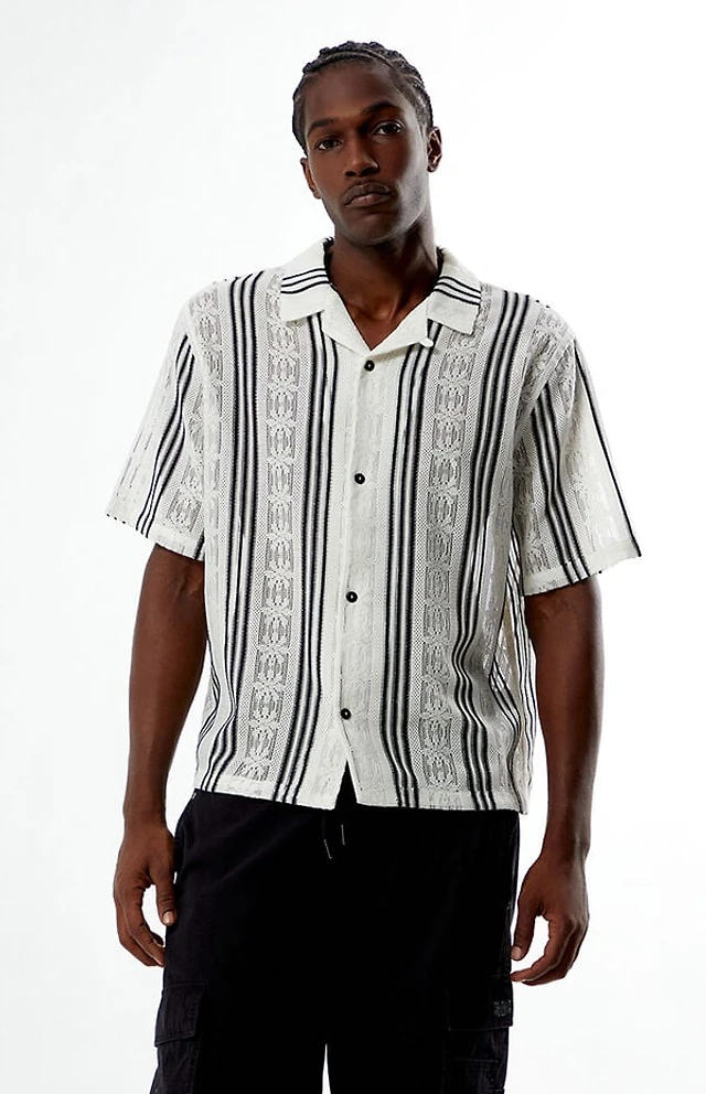 Pacsun Textured Striped Oversized Resort Camp Shirt