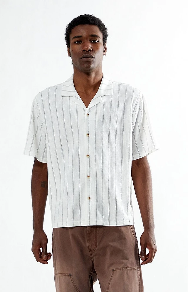 Pacsun Notice Striped Button Down Cropped Long Sleeve Shirt