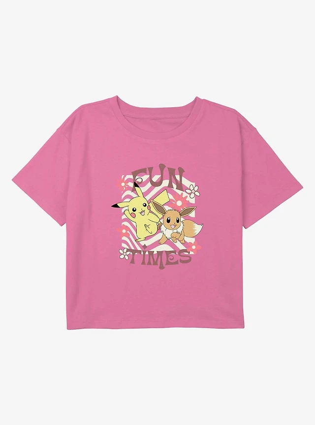 Pokemon Fun Times Pikachu and Eevee Youth Girls Boxy Crop T-Shirt