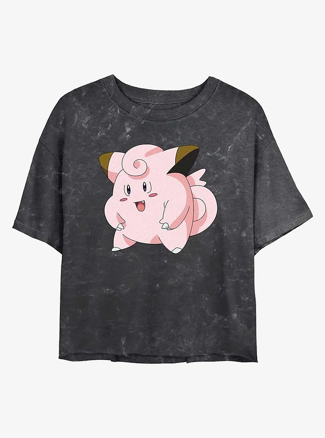 Pokemon Clefairy Pose Mineral Wash Womens Crop T-Shirt