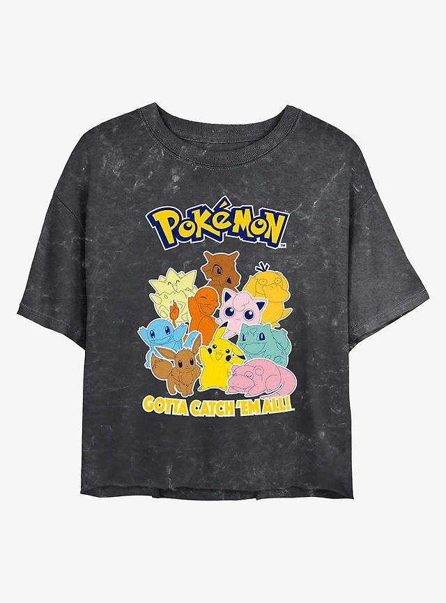 Pokemon Catch 'Em All Mineral Wash Womens Crop T-Shirt