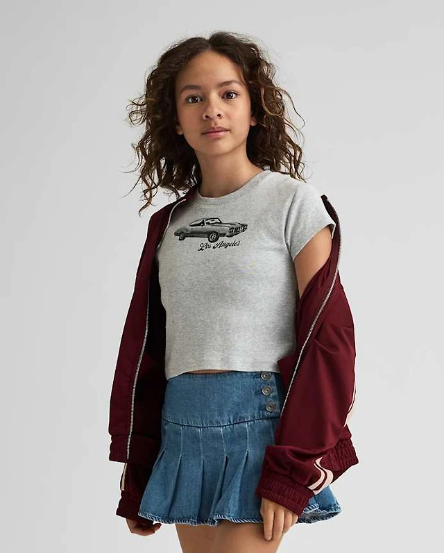 Girls Floral Pointelle Baby Tee