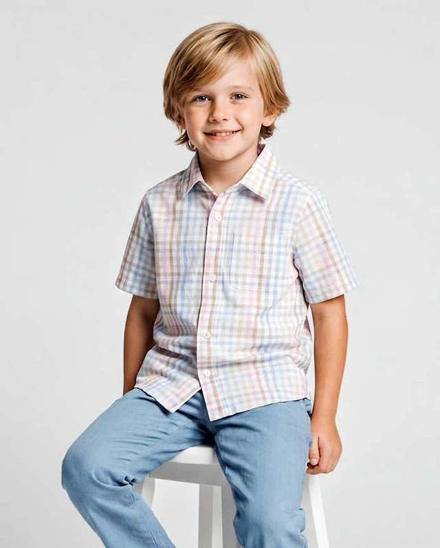 Boys Print Poplin Button Up Shirt