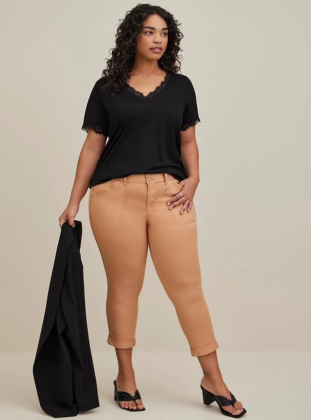 Classic Fit Feather Soft Slub Lace Trim V-Neck Tee