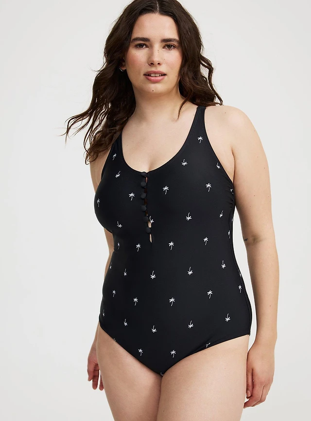 Wire-Free Button-Front Plunge Cheeky One Piece