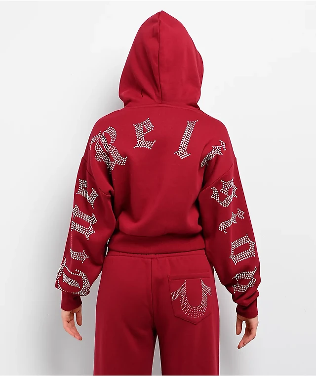True Religion Crystal Red Relaxed Crop Zip Hoodie