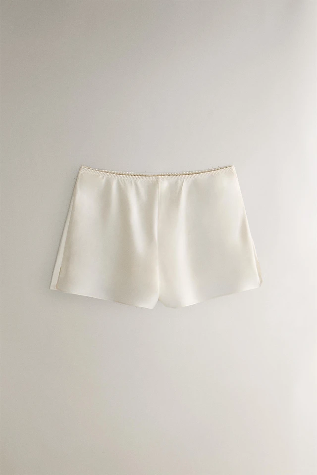 BEIGE SILK SHORTS
