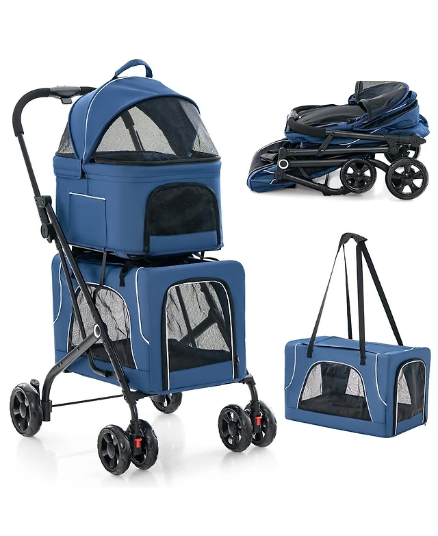 Ecooso 4-in-1 Double Pet Stroller with Detachable Carrier and Travel Carriage