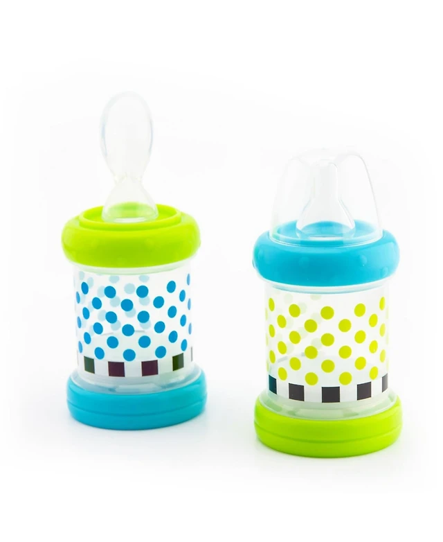 Sassy Baby Food Nursery 4+ Months Set of 2- 4oz 100% Silicone Nipple and Spoon