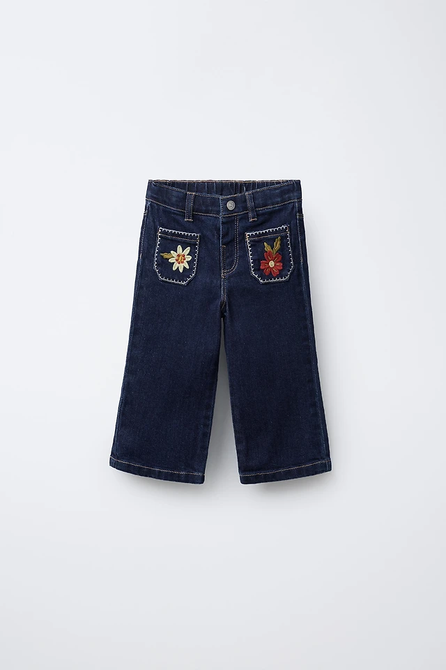 EMBROIDERED KNIT STRAIGHT LEG PANTS