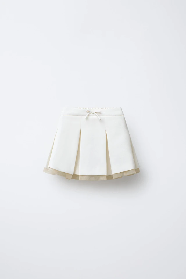 TULLE HEM BOX PLEAT SKIRT