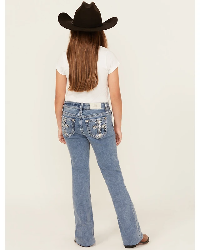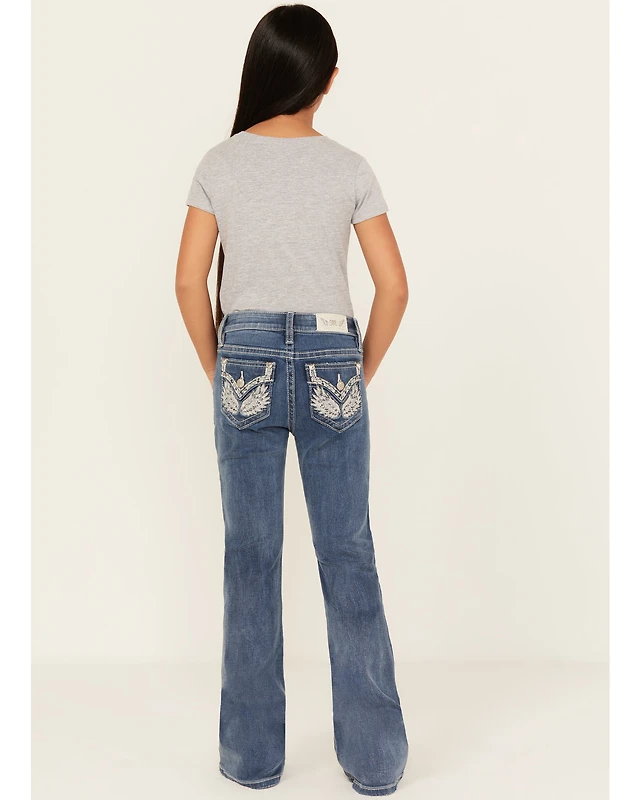 Miss Me Girls' Light Wash Winged Pocket Bootcut Stretch Denim Jeans