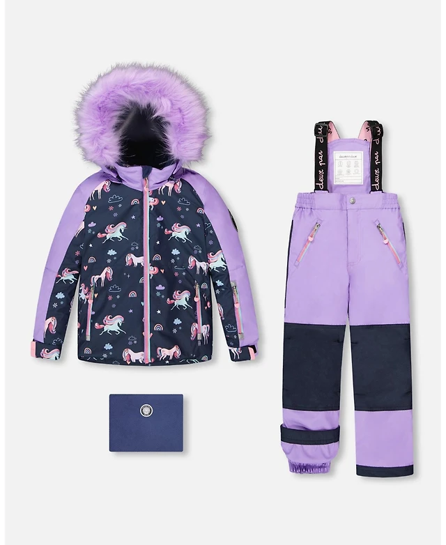 Deux par Girl Two-Piece Play Snowsuit with Printed Pants Lavender