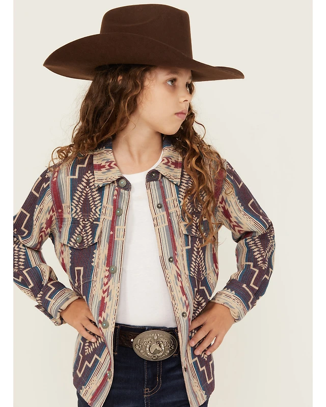 Shyanne Girls' Southwestern Striped Print Long Sleeve Snap Shacket