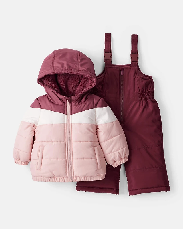 Baby Girl 2-Piece Color Block Hooded Snowsuit Jacket & Bib Set