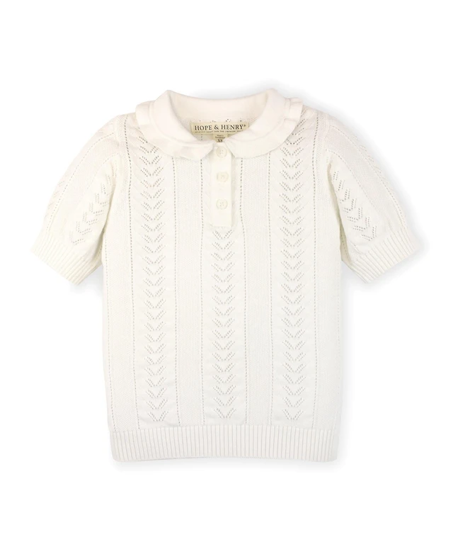 Lands' End Girls School Uniform Long Sleeve Ruffled Peter Pan Collar Polo Knit Shirt