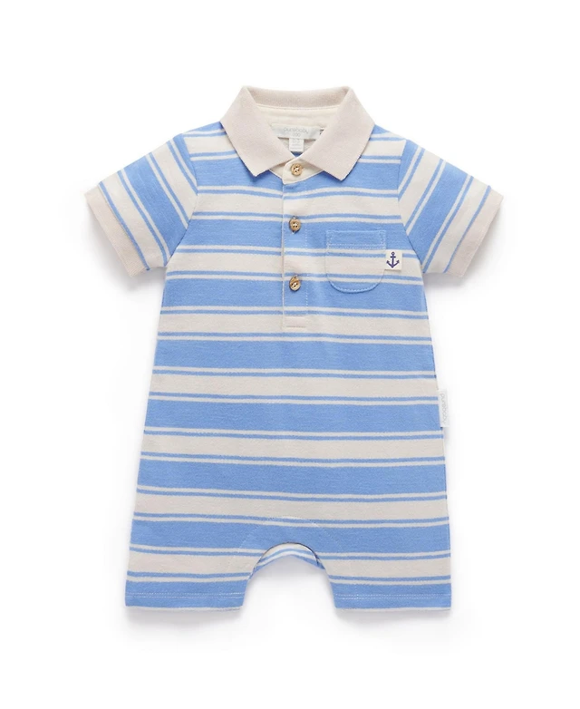 Purebaby Baby Boys Striped Polo Growsuit
