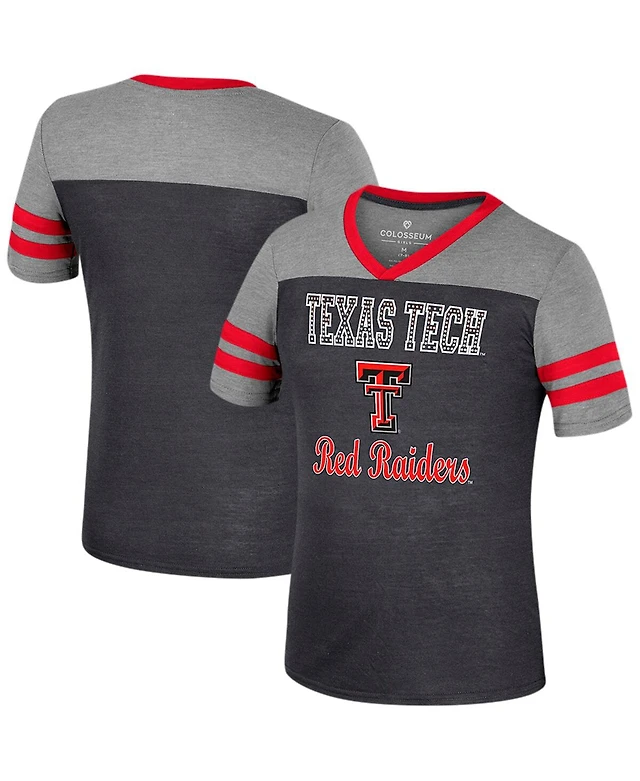 Colosseum Big Girls Black/Heather Gray Texas Tech Red Raiders Summer Striped V-Neck T-Shirt