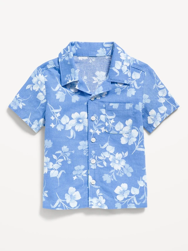 Printed Linen-Blend Pocket Shirt for Toddler Boys
