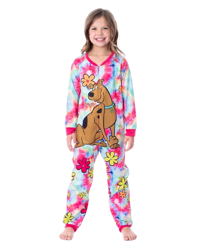 Scooby-Doo Girls Tie-Dye Flower Power 1-Piece Union Suit Footless Sleeper Pajama