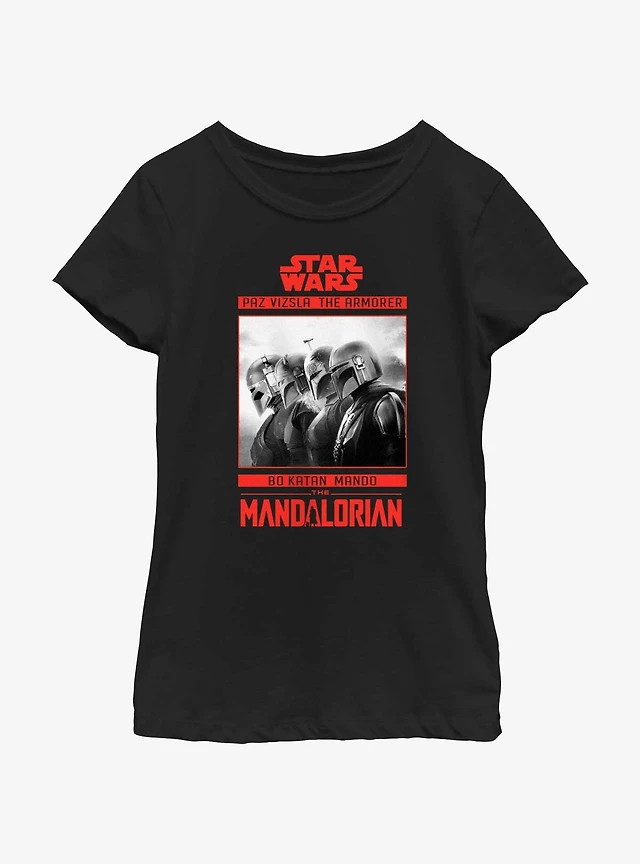 Star Wars The Mandalorian Bounty Hunter Line Up Poster Youth Girls T-Shirt