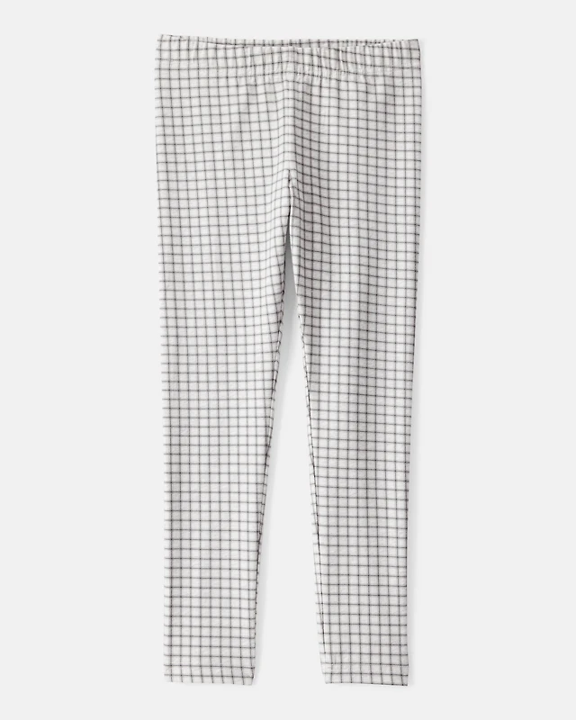 Girls Plaid Cotton Pull-On Stretch Leggings - Grey