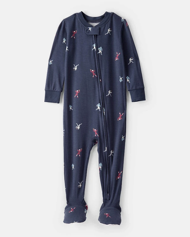 Baby Boy Football Print PurelySoft Long-Sleeve 2-Way Zip 1-Piece Pajamas - Navy Blue