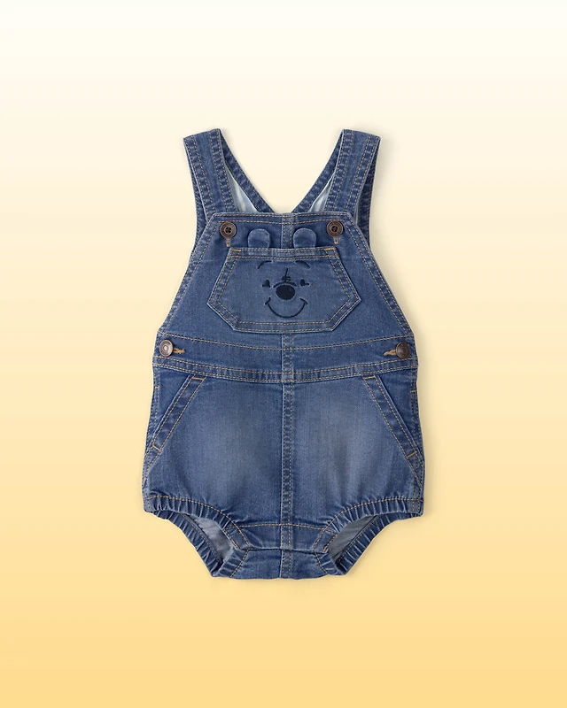 Baby Disney© Winnie the Pooh Embroidered Stretch Denim Bubble Romper - Medium Wash